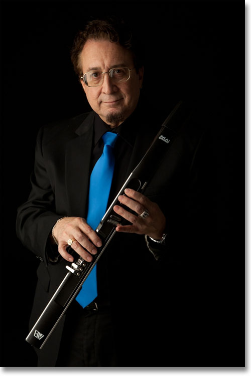 The instrumentation is EWI (Electronic Woodwind Instrument), Electric Guitar, Electric Upright Stick Bass, Electric Synth/Keyboard and Synth Pad Drums.